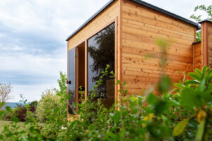 Chtěla minimalistický styl s přírodními materiály a proto si vybrala venkovní saunu Native.
