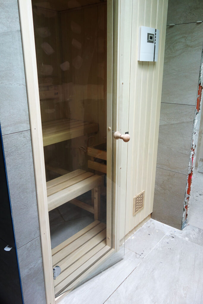 Saunová kamna jsou ve většině realizací EOS Mini. Ty jsou standardem a klientům vyhovují, jen občas volí za příplatek Savotec Mini. Prostředí v sauně hlídá a nastavuje regulace EOS Econ D1.