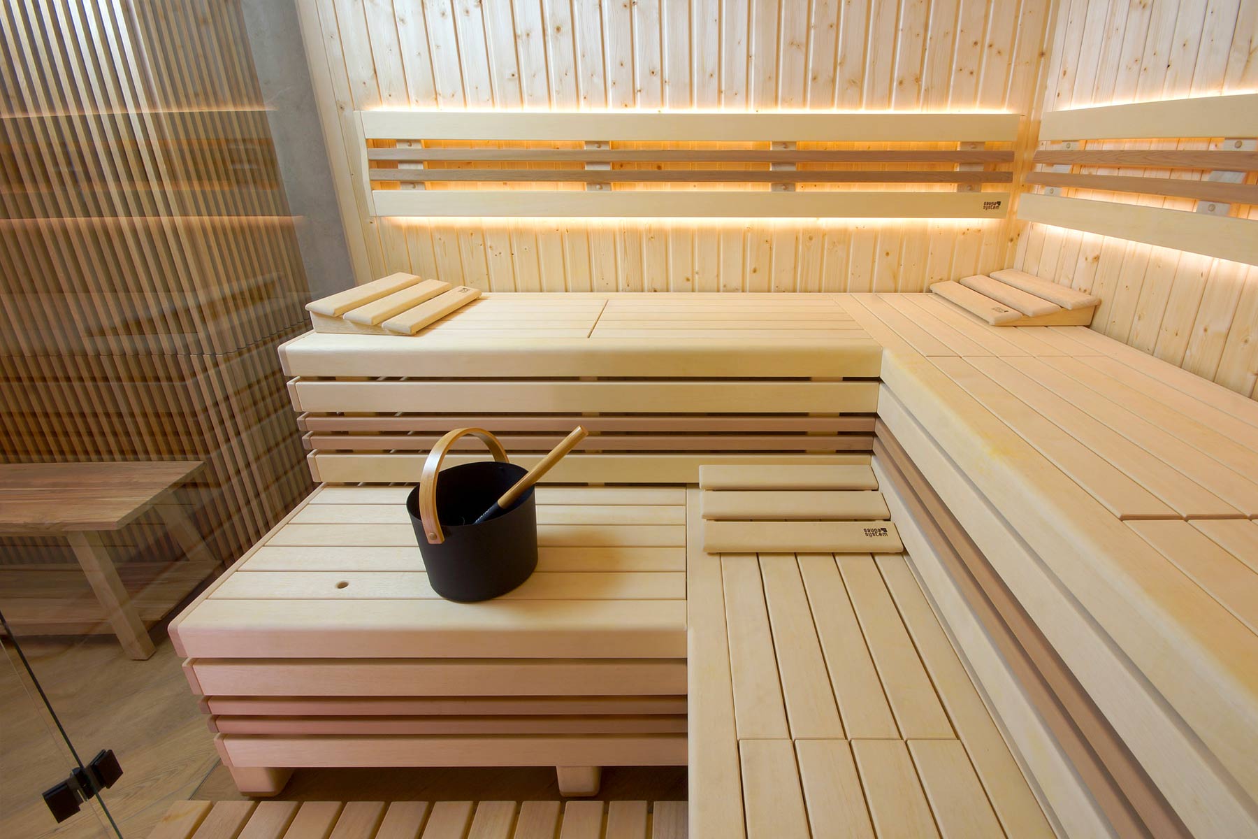 Aby byla sauna ve společných prostorách maximálně bezpečná, doporučili jsme klientovi instalaci Cover protection rail. Tento systém chrání saunové topidlo tak, že zabraňuje kontaktu uživatele i zapomenutých ručníků s horkými saunovými kameny. Zajišťuje tak bezpečné saunování a snižuje riziko popálení nebo vzniku požáru.