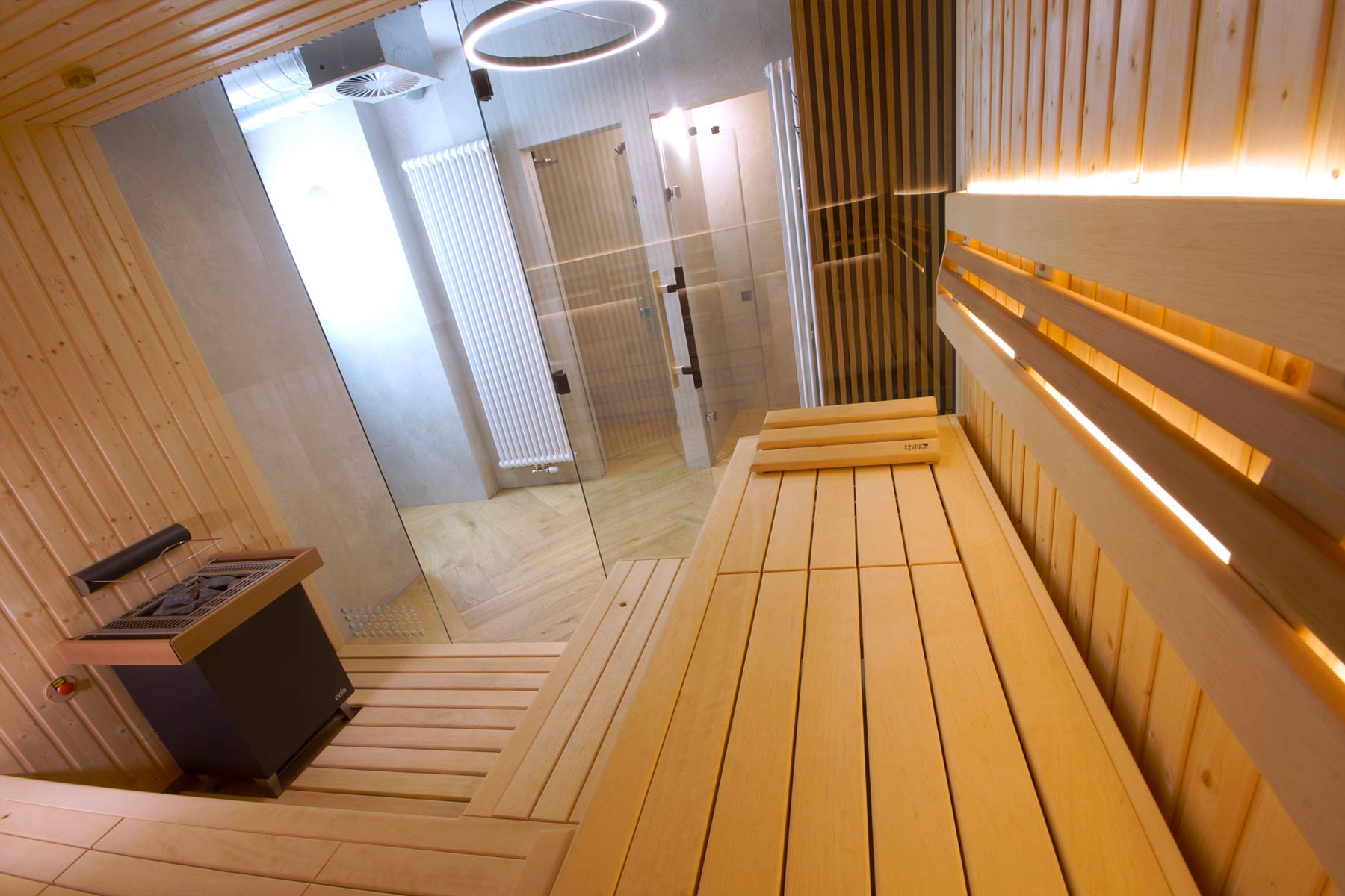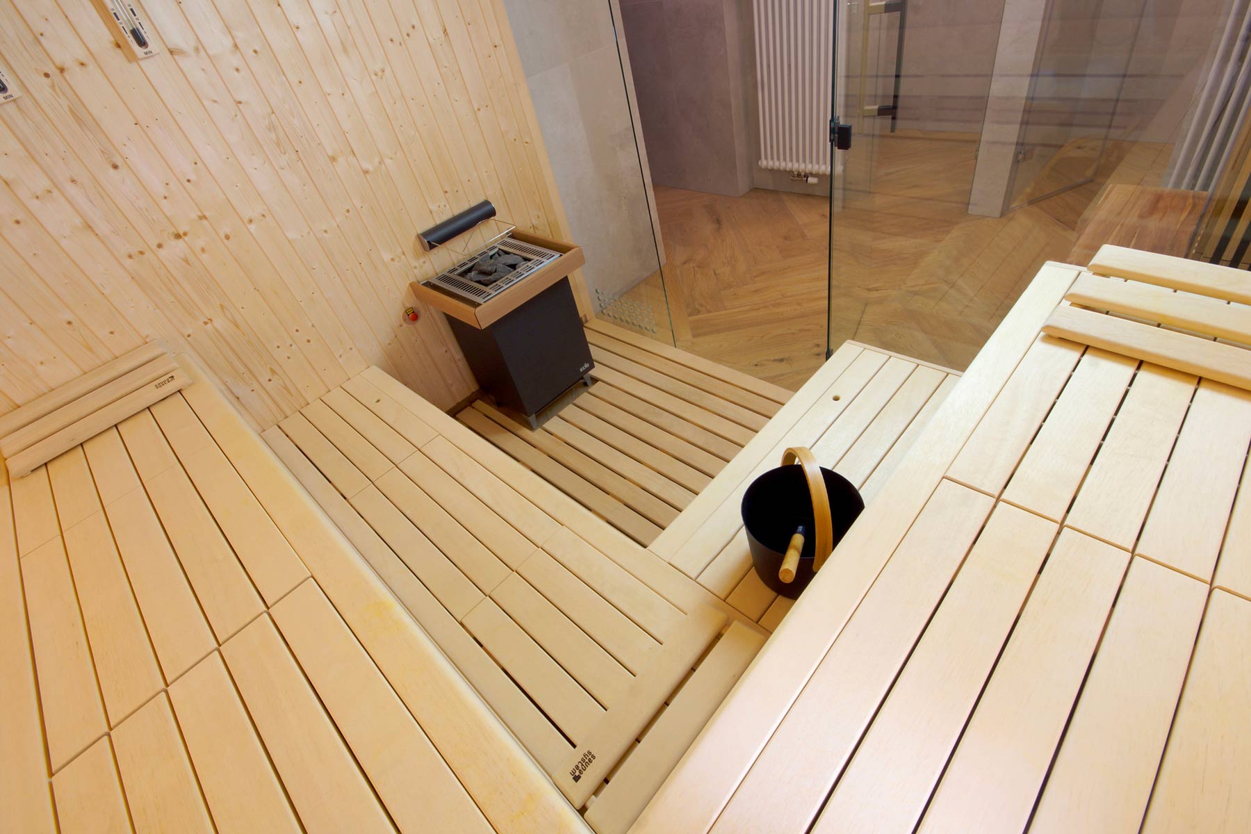Tato sauna je součástí komfortního wellness v bytovém domě. Rezidenční projekt v historické části Prahy nabízí, kromě dechberoucích výhledů na okolní památky, i spoustu nadstandardů pro obyvatele tohoto domu nebo jejich návštěvy. Komplexní realizaci zajišťovala naše dceřiná společnost WellnessVision.